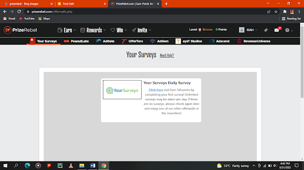 The have daily OFFER WALL were you get a survey that you can do to get high point in couple of minute which is around 54 to above point…